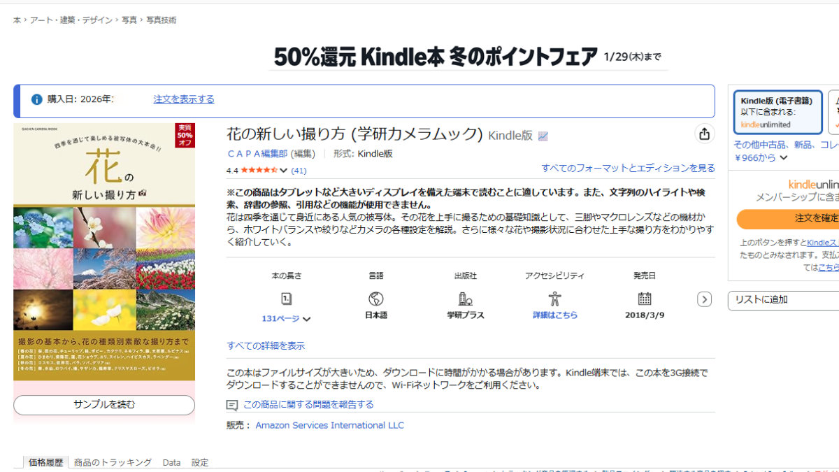 そんな中、「花の新しい撮り方 (学研カメラムック)」という書籍がkindle unlimitedで読み放題だったので、読んでみました。