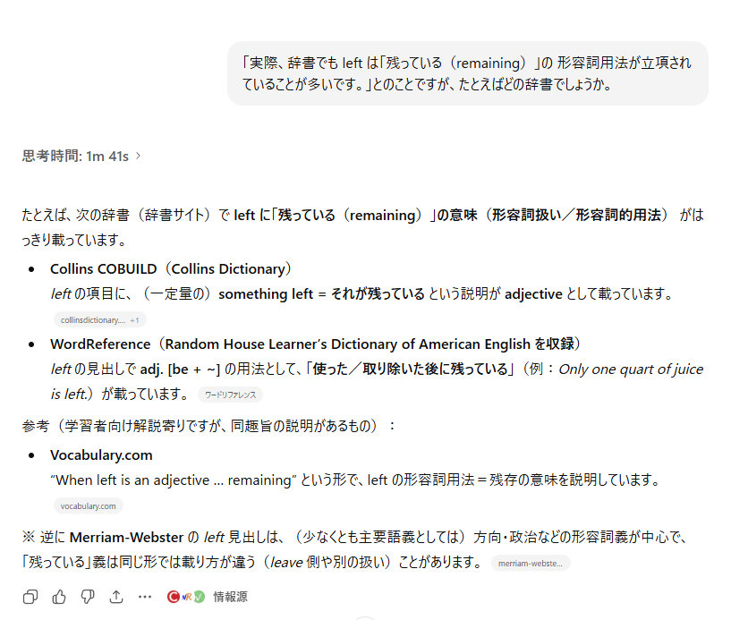 ChatGPTはこのleftを形容詞と解釈している